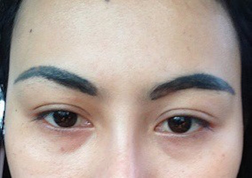 Hậu quả phun thêu chân mày sai cách khiến chân mày bị lệch.